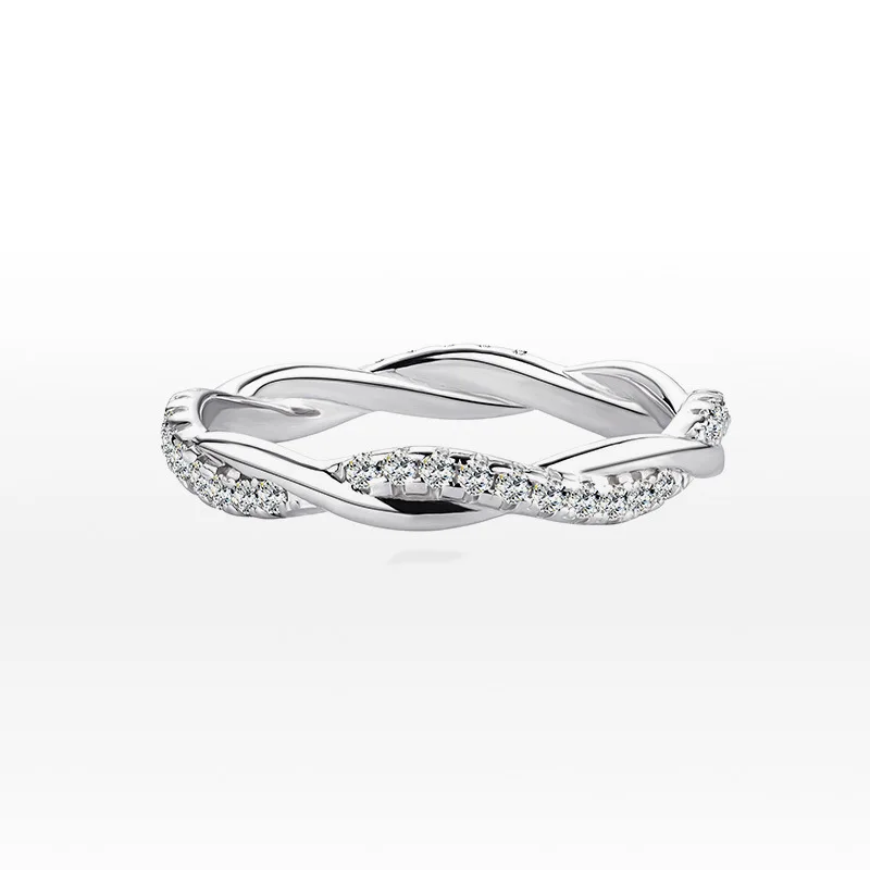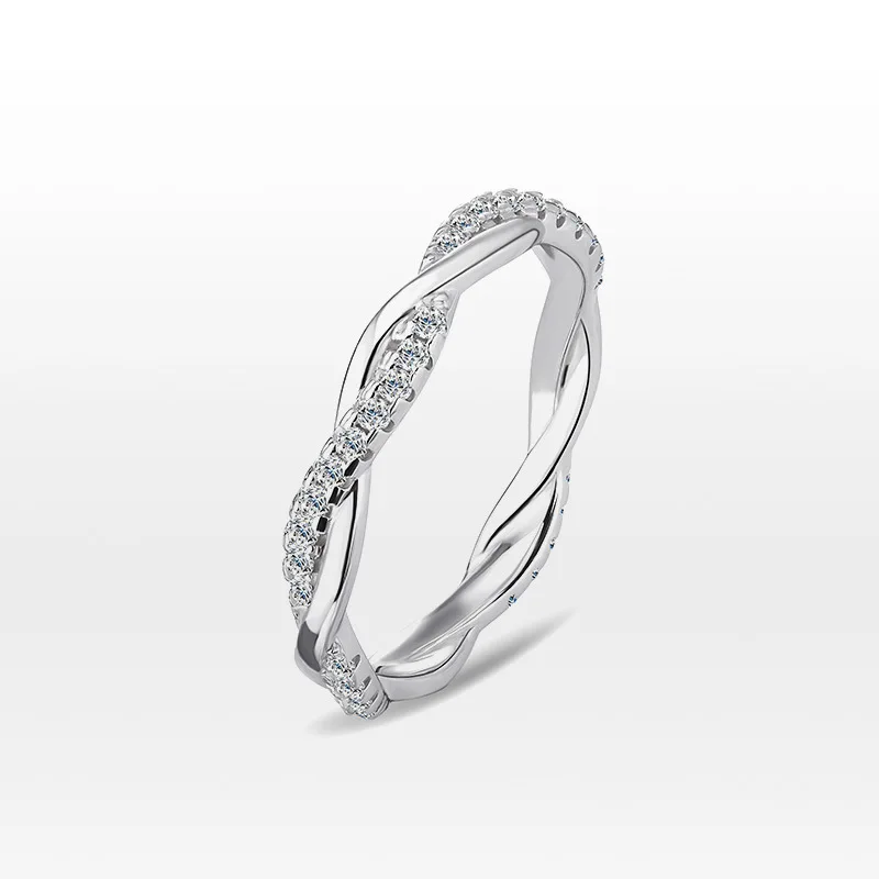 Twisted Moissanite Band Ring - Genuine 925 Sterling Silver